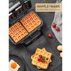 Safe & Easy to Use – The waffle-iron housing made of heat-resistant stainless steel, the non-slip feet and the insulated handles ensure safe operation without the risk of burns. LED indicator (red light is always on, preheating or heating is completed, green light is off).