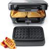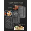 3 in 1 Waffle Maker – Offers 3 removable grill plates (sandwich, waffle and grill plates). Perfect for classic sandwiches, crispy waffles, juicy steak, slightly burnt vegetables etc. In addition, these three detachable plates are teflon coated, high-quality non-stick coating, water and oil repellent, easy to clean.