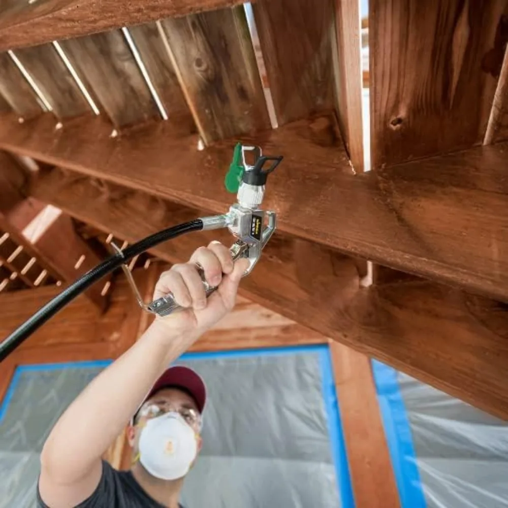 - Includes 413 HEA spray tip for semi-transparent and solid stains, water based lacquers and poly
