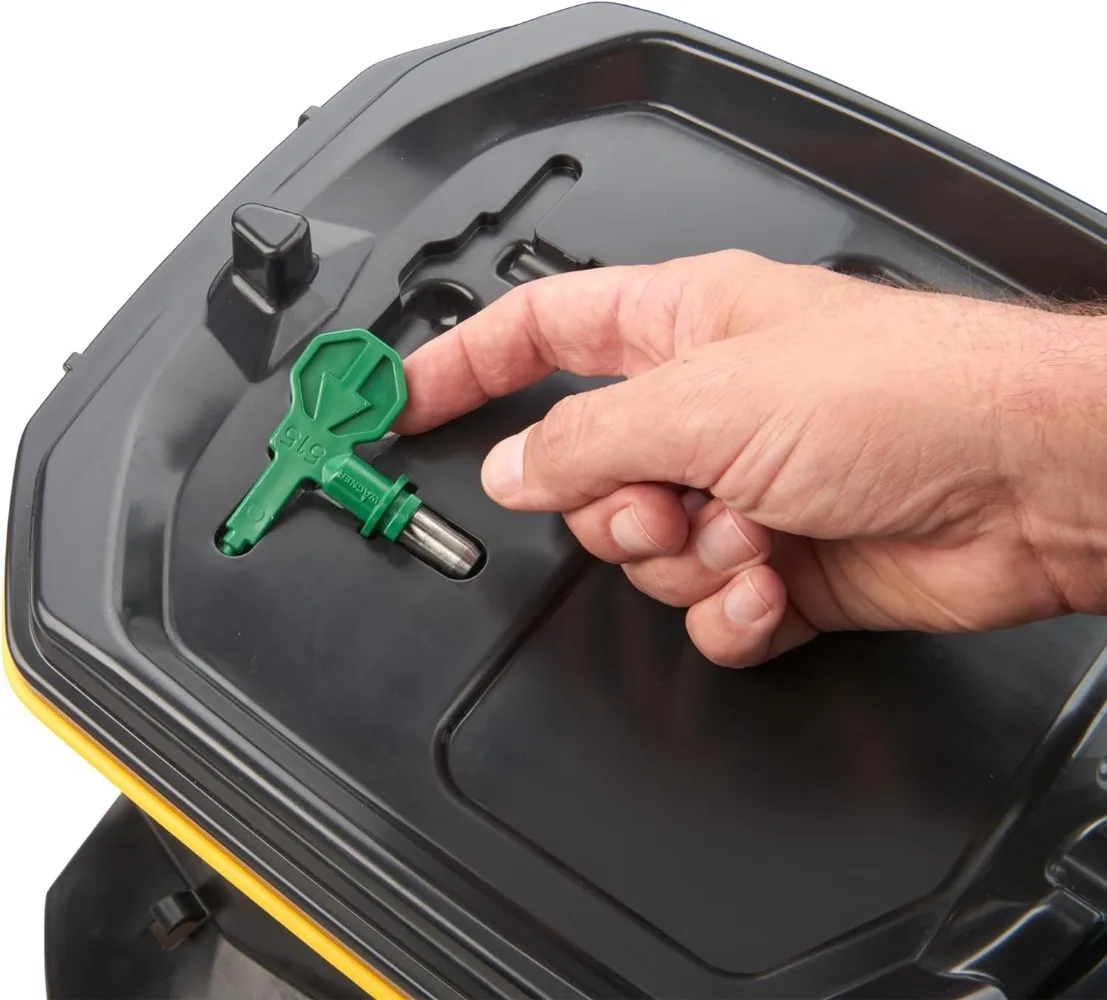 - EXTRA ACCESSORIES INCLUDED: The sprayer comes with a 12″ extension wand for added reach when spraying tall walls or ceilings, underneath decks, eaves on home exteriors and more. It also comes with a 413 spray tip for spraying stains and a 515 spray tip for latex paints