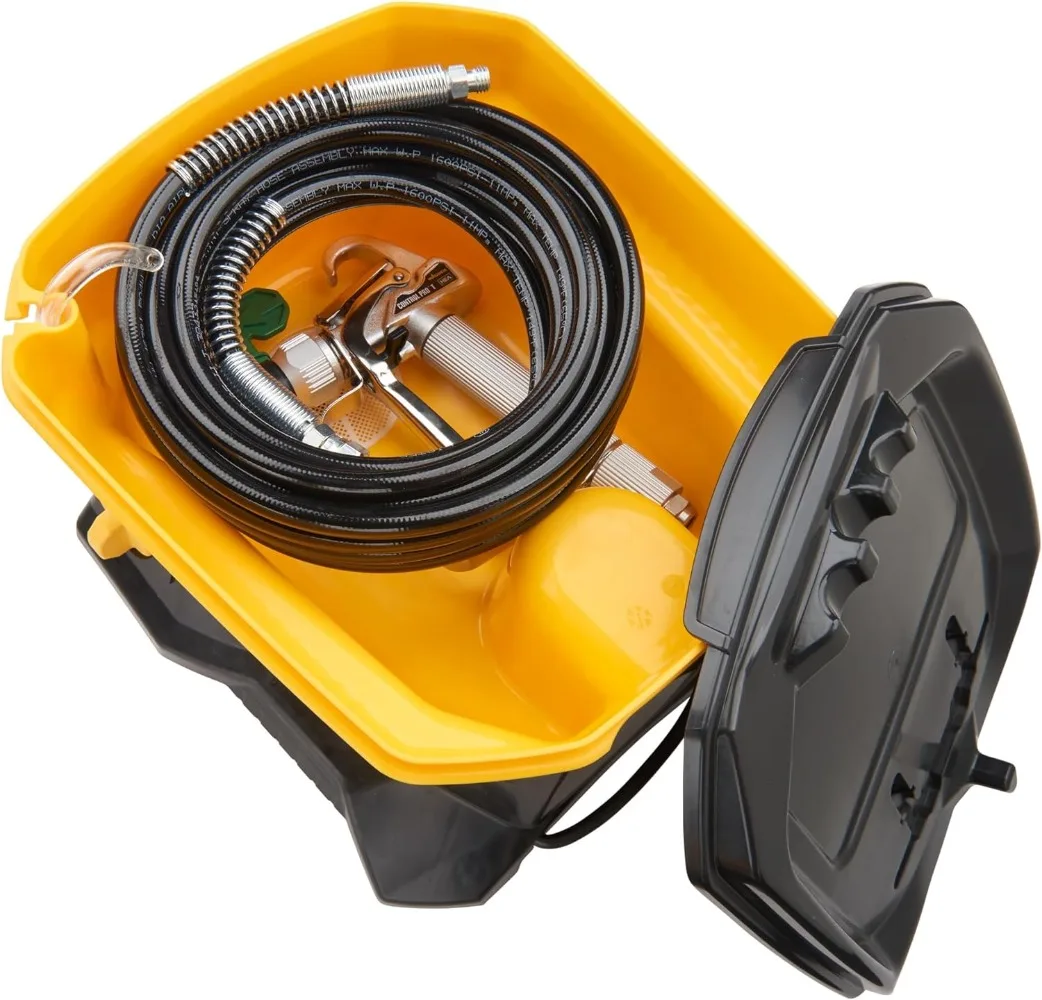 - CONTINUOUS PAINTING: The stationary paint sprayer holds up to 1.5 gallons of material right in the hopper and has a 25 ft. hose so you can easily complete big projects without stopping