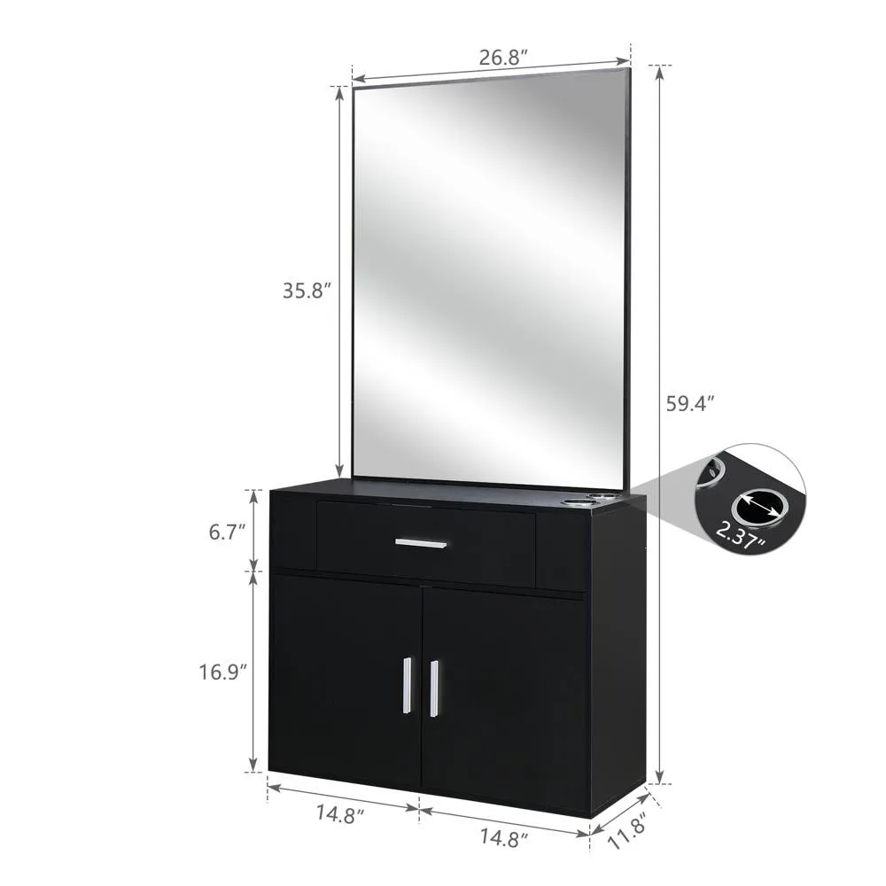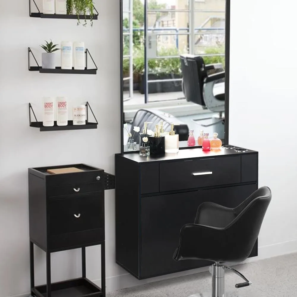 Wall Mount Salon Station Barber Stations Hair Styling Station Equipment + Mirror