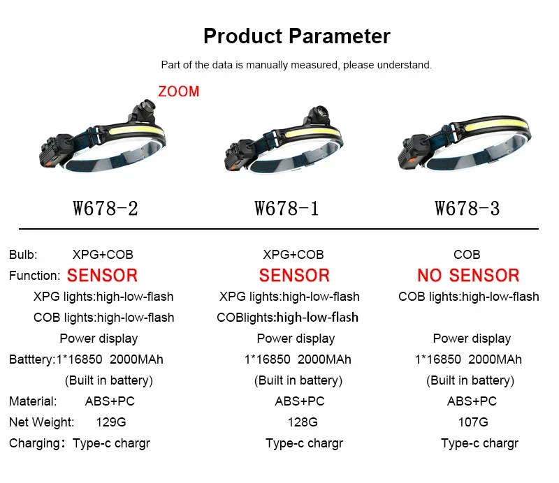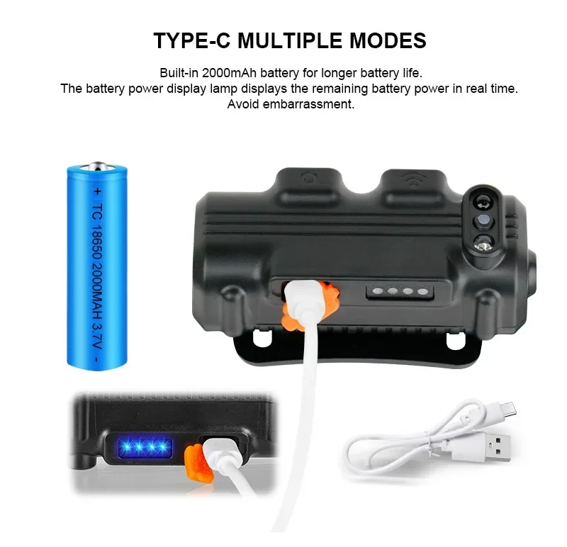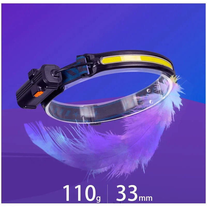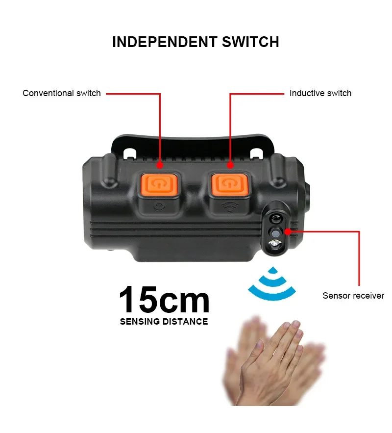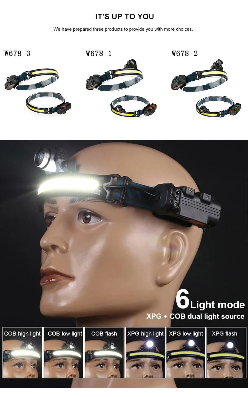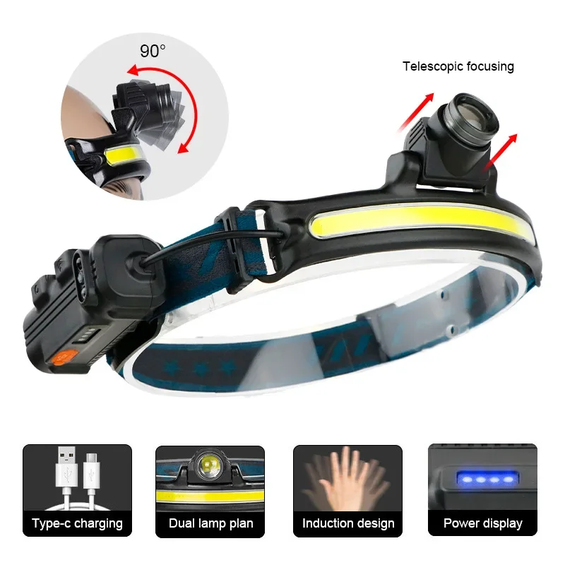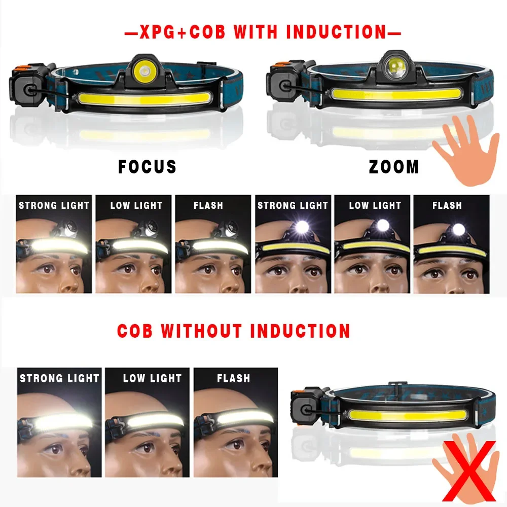 Wave Sensor LED Headlamp Powerful XPG+COB Headlight with Built-in 18650 Battery
