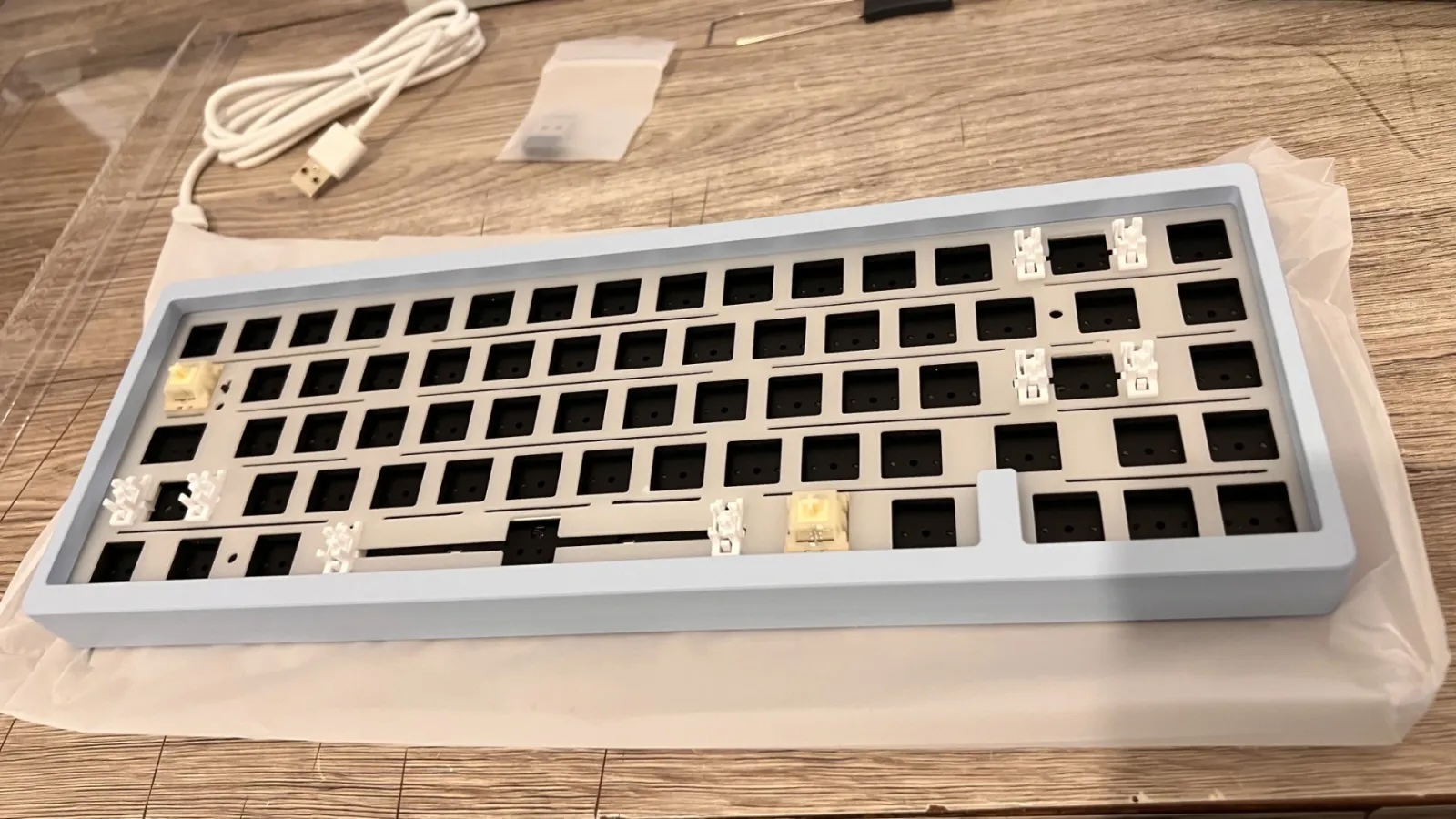 It works perfectly, I did not expect much from the stabilizers but frankly they surprised me quite a lot, they do not seem to come lubricated but the feeling is very soft, the only problem is that for the trip I imagine the Foams and The olate that is loose somewhat dancing and the cables of the doughterboard a little crushed by the case but nothing to open and rearrange does not solve in general very good bareboons for the price