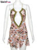 Weird Puss See Through Sexy Dress Women Party Hollow Ruched Ruffles Backless Spaghetti Strap Irregular Midnight Clubwear Bodycon