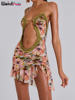 Weird Puss See Through Sexy Dress Women Party Hollow Ruched Ruffles Backless Spaghetti Strap Irregular Midnight Clubwear Bodycon