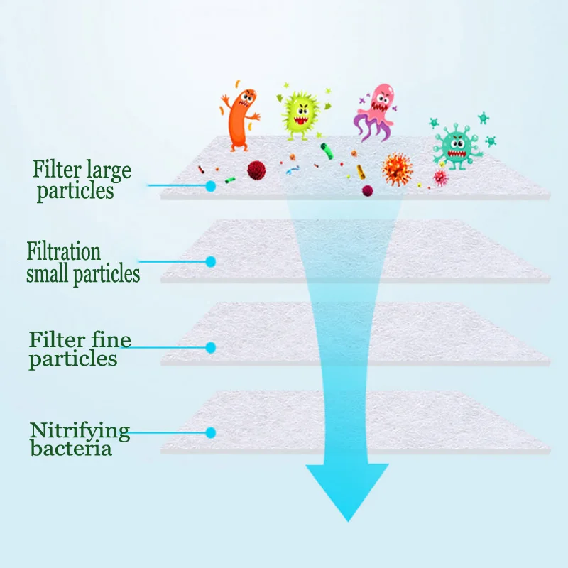 This product adopts honeycomb design, strong water permeability, excellent purification effect, production process does not use glue, no harmful substances, more environmental protection.It is a new generation of filtration material for fish tank water purification.Can be cleaned repeatedly, service life more than 100 times.