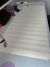 Very nice white suede (rather beige). Nice quality. I had already ordered it in light green. The 2 photos represent the carpet in 100x50 cm. The mouse slips perfectly. Beautiful finishes. The carpet arrived rolled up without impact. Posed, they look good and are not wrapped. I recommend.
