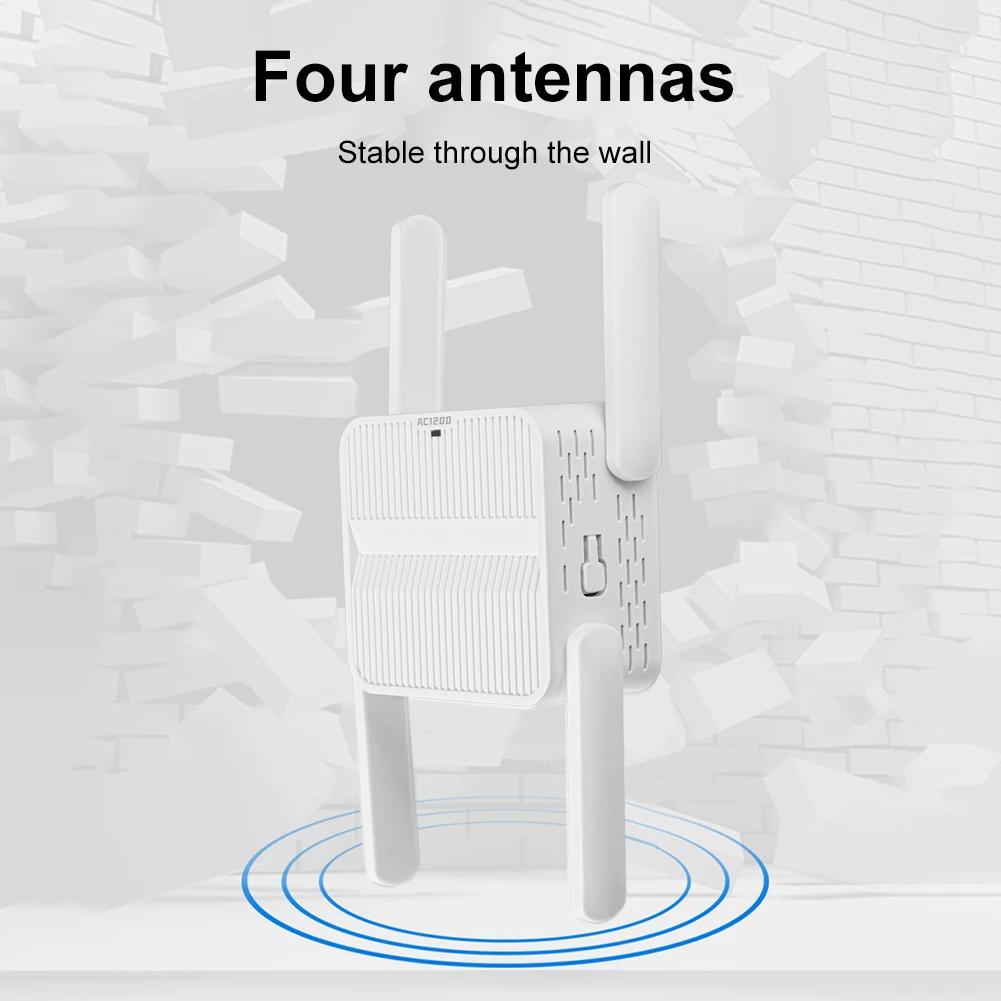 WiFi Repeater Extender 1200Mbps WiFi Extender Signal Booster Dual Band 2.4G/5.8GHz Wi-Fi Signal Amplifier with Ethernet Port Signal Booster Amplifier 4 Antennas