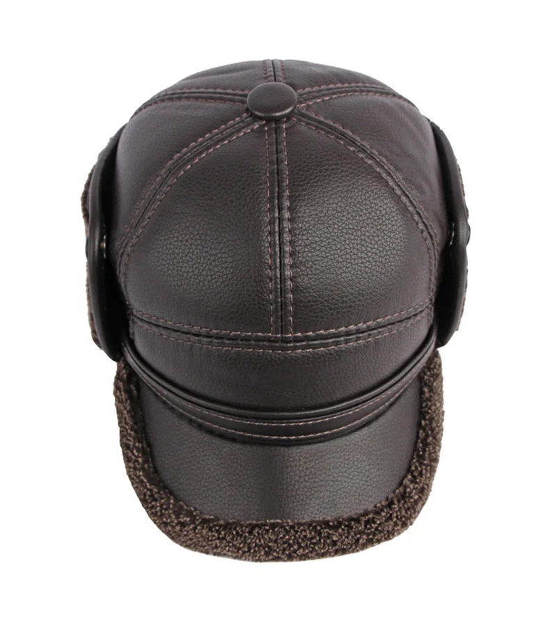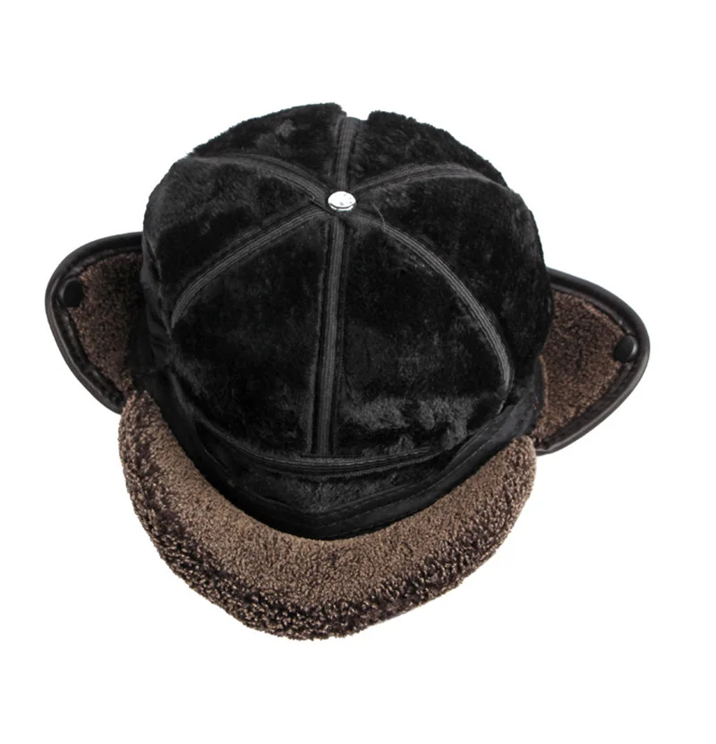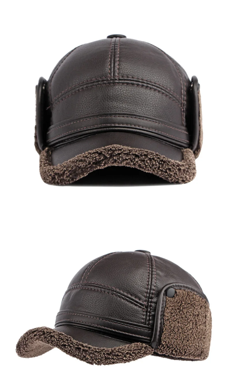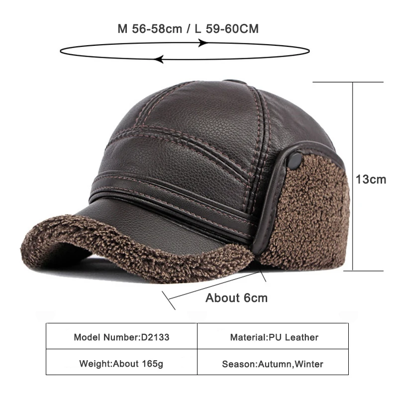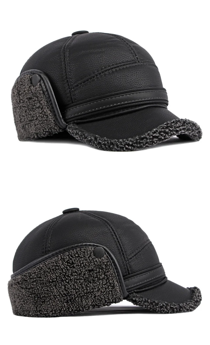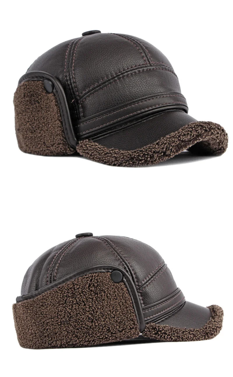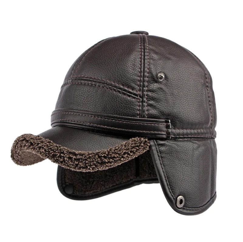 Winter Baseball Cap Men PU Leather Bomber Caps Middle Elderly Dad Hat With Earflaps Thicker Warm Windproof Russian Trapper Hat