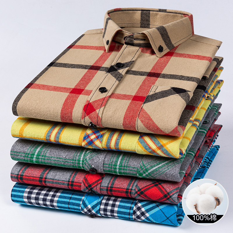 Winter Men’s Plaid Casual Shirts Cotton Warm Flannel Long Sleeve Front Pocket Fashion Clothing Businessman Daily Shirts Easycare