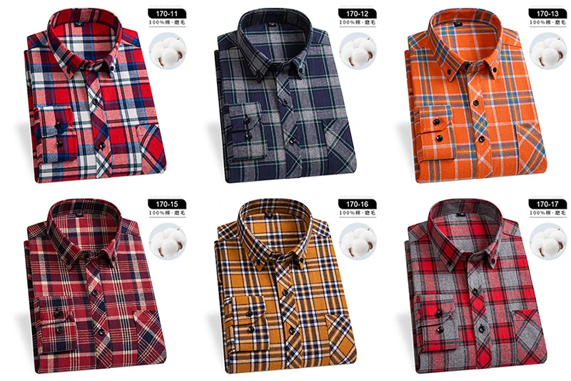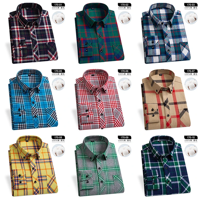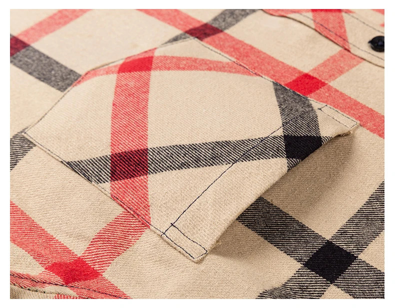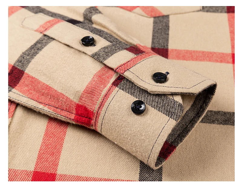 Winter Men’s Plaid Casual Shirts Cotton Warm Flannel Long Sleeve Front Pocket Fashion Clothing Businessman Daily Shirts Easycare