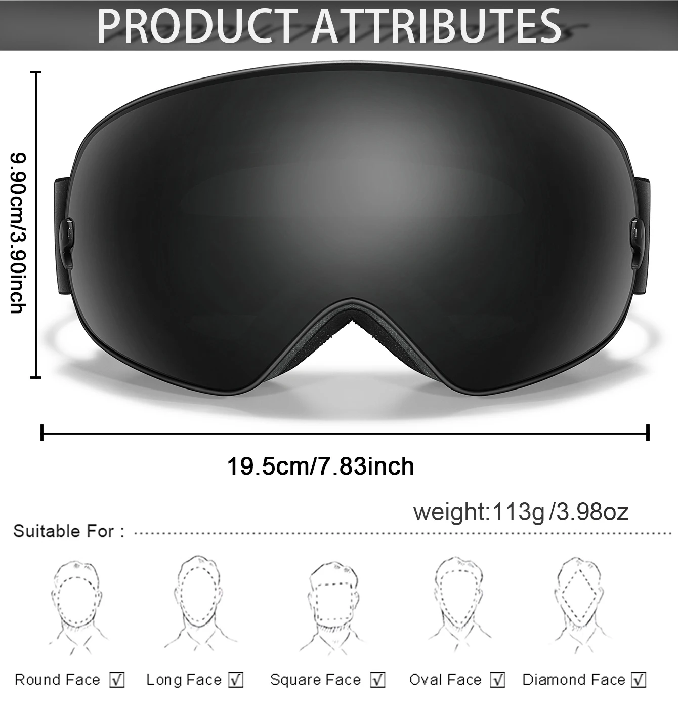 Winter SKI Goggles Men And Women Teen UV400 Anti-Fog Outdoor Snowboard Eyewear, Charistmas Gifts Free Optical Frame and Bag,