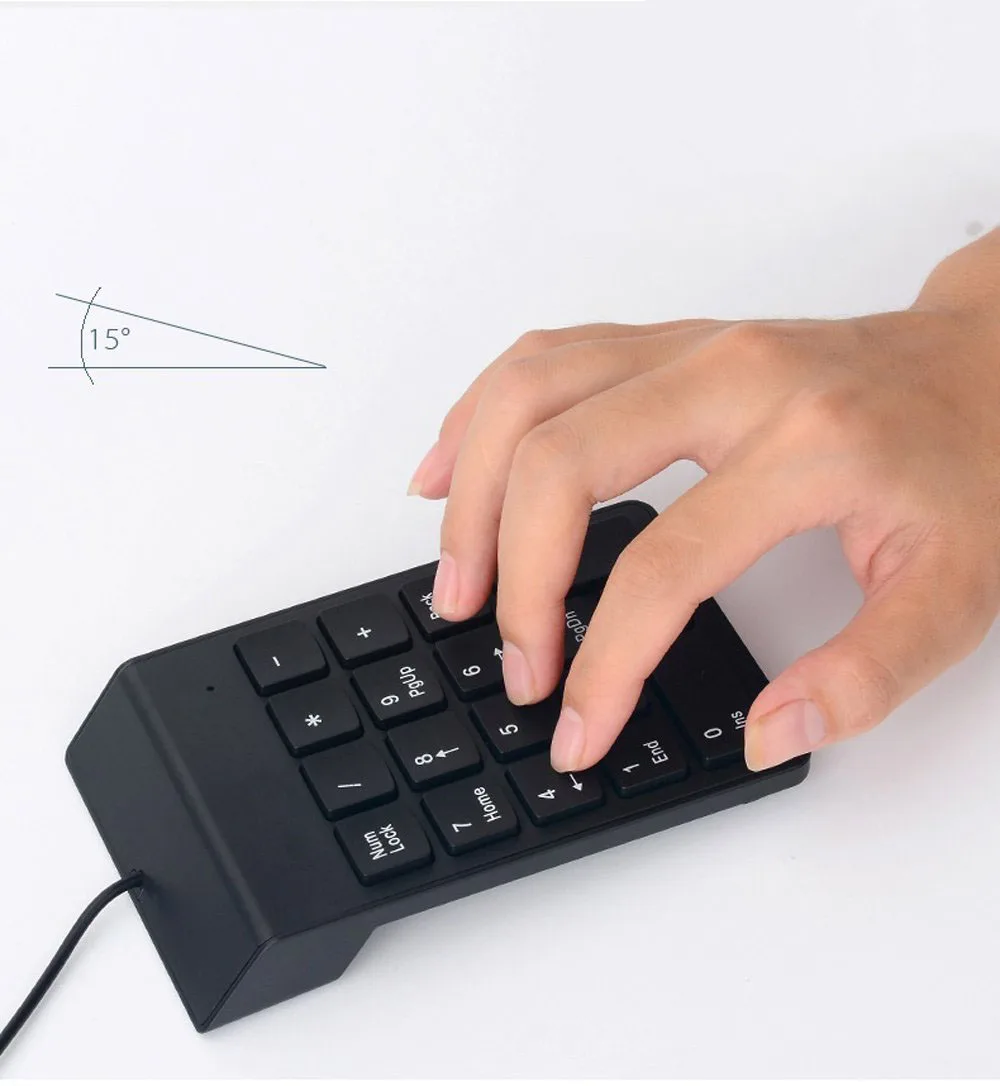 It is an ingenious wired numeric keypad, 18 keys, thin and compact. Plug-and-play, simple and convenient. Keystroke life is up to 5 million times. Tilt design and non-slip foot pads, make it durable. Besides, its mini and portable design is another plus point, which makes it a perfect companion for business travel.