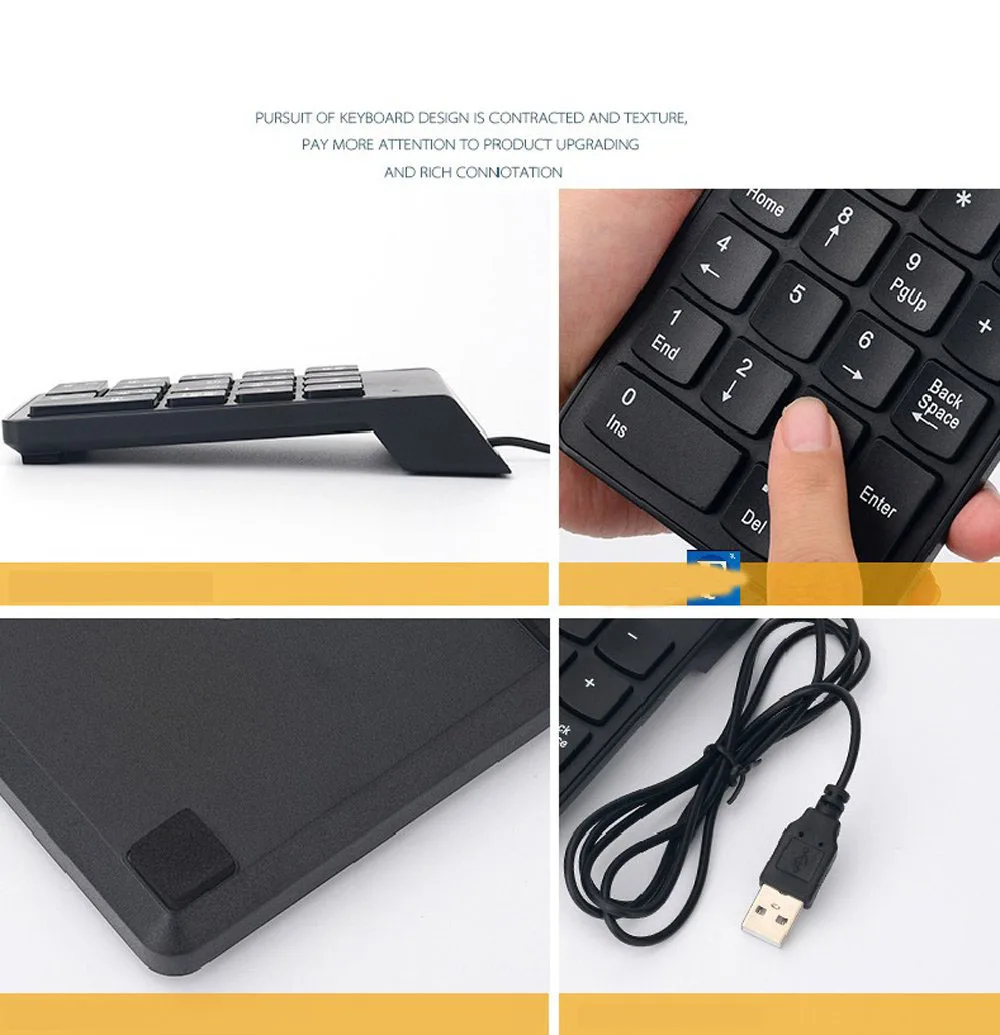 Thin and compact design: 18-key wired numeric keypad, mini and portable.