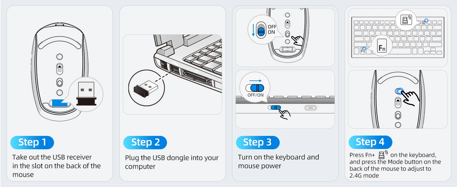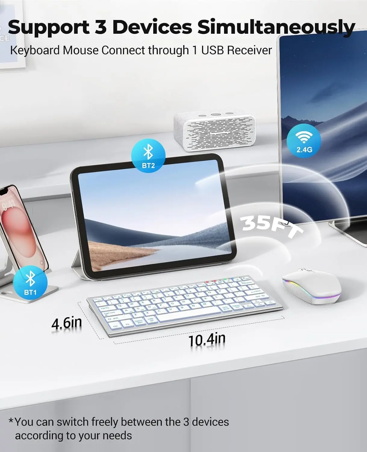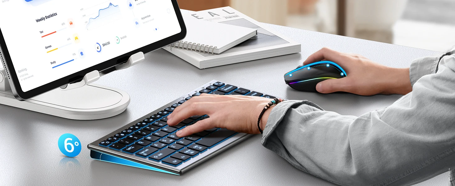 · [Seamless Connectivity for Efficiency] – Elevate your workflow with our keyboard and mouse wireless! Dual connectivity via 2.4G and Bluetooth channels ensures the wireless keyboard is compatible with Mac OS iPad and iOS. Easily switch between devices by long-pressing and pressing the “FN” + “Link 1, 2, 3” keys. No need to replace the built-in battery for up to 800 hours of standby time