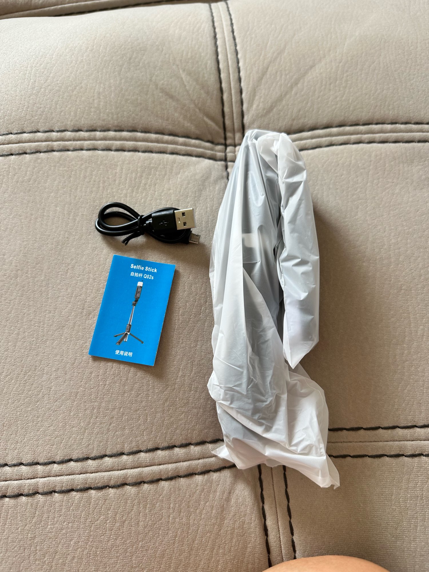 Works great, comfortable, durable handle. Charging wire included. Bluetooth button to turn on.