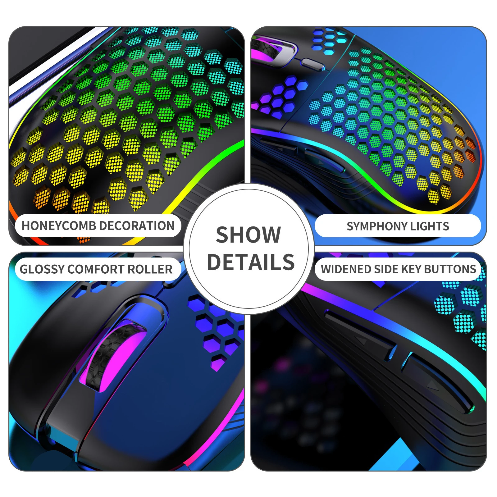 • Honeycomb Shell :The unique honeycomb shell design not only adds to the aesthetic appeal but also enhances durability and reduces the weight of the mouse.
