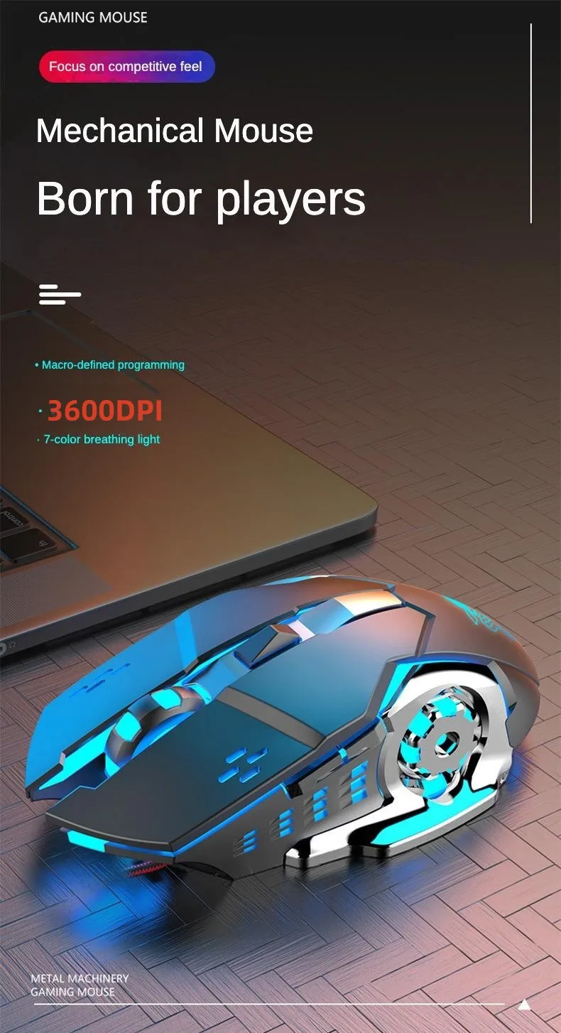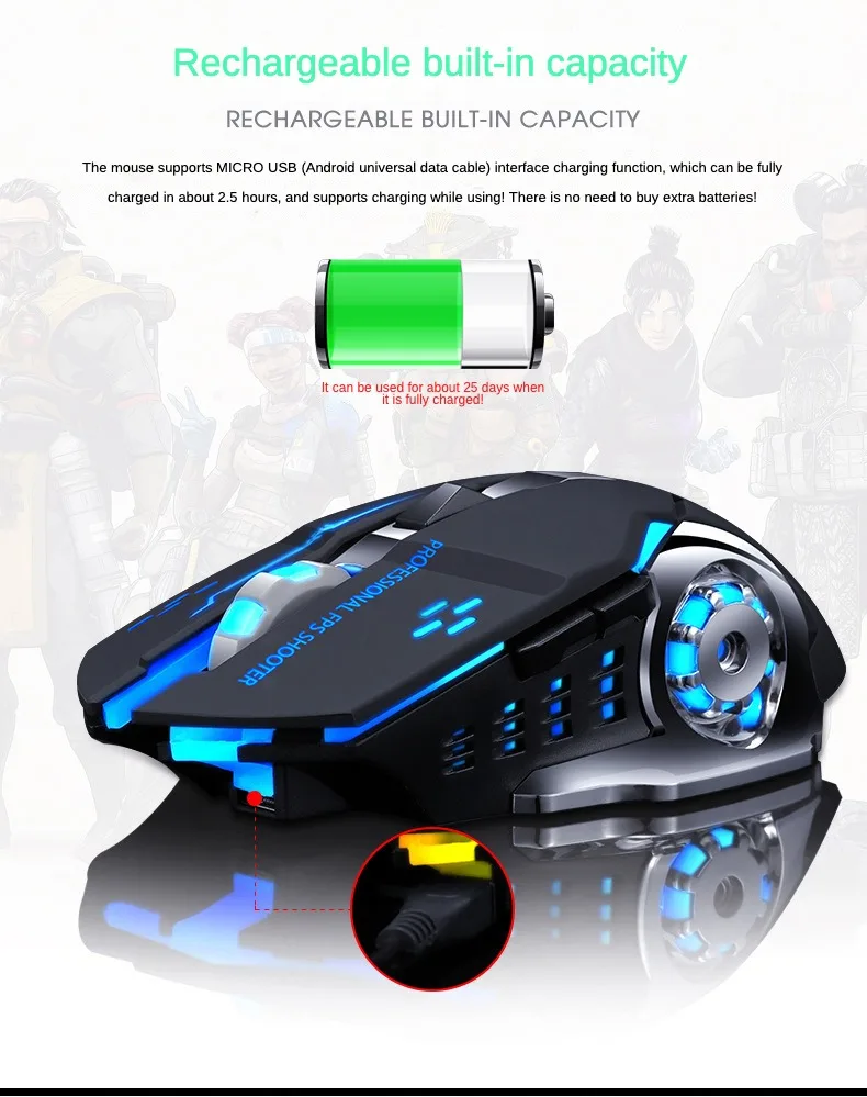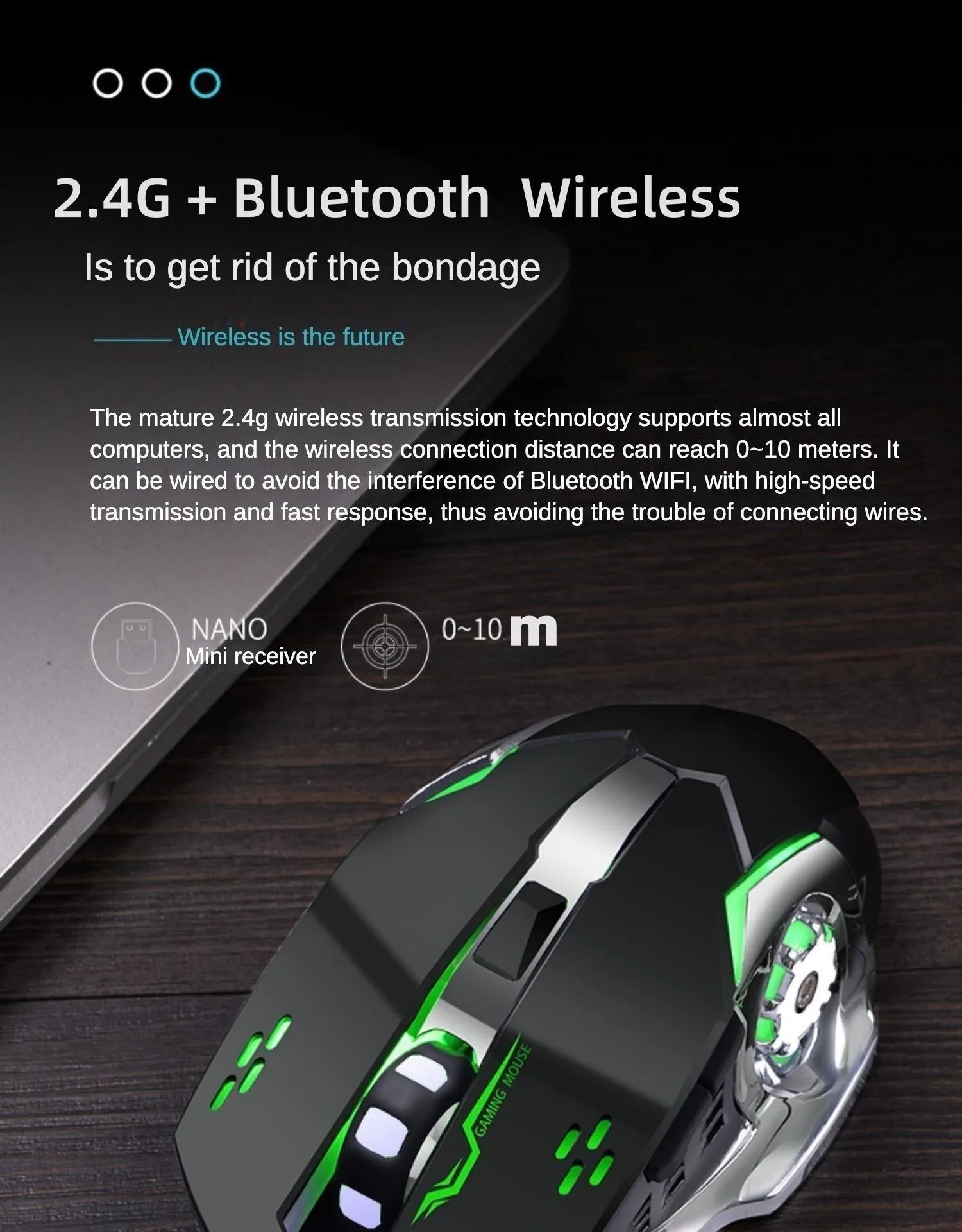 Wireless Gaming Mouse ,Rechargeable Bluetooth +2.4G Mice With 7 Color Backlit, 6 Buttons & Silent Click for Laptop, IPad, Mac,Pc