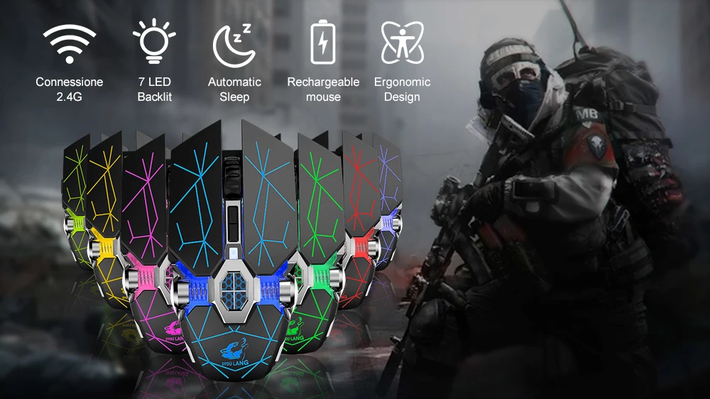 The RGB wireless mouse I bought turned out to be a fantastic choice. The connection is stable and responsive, ensuring a game and work experience without delays. The ergonomic design fits perfectly in the hand, offering comfort even after hours of use. The drums has a considerable duration, allowing days of use without having to recharge it continuously. The Keys are well placed and offer a precise and pleasant click. Overall, I am extremely pleased with my purchase: a wireless mouse that combines excellent performance and an attractive design. If you circles a reliable, modern-looking mouse, you couldn't ask for better.