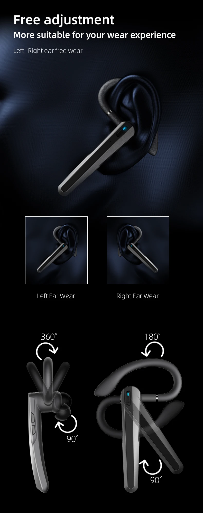 Hands Free & Smart Function:The hands free bluetooth earpiece with buttons to play/pause music, previous/next track, Volume+ /-, active Siri/ voice assistant, call answer/ end, Reject, Redial.