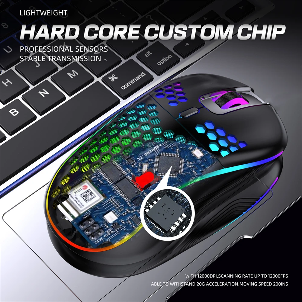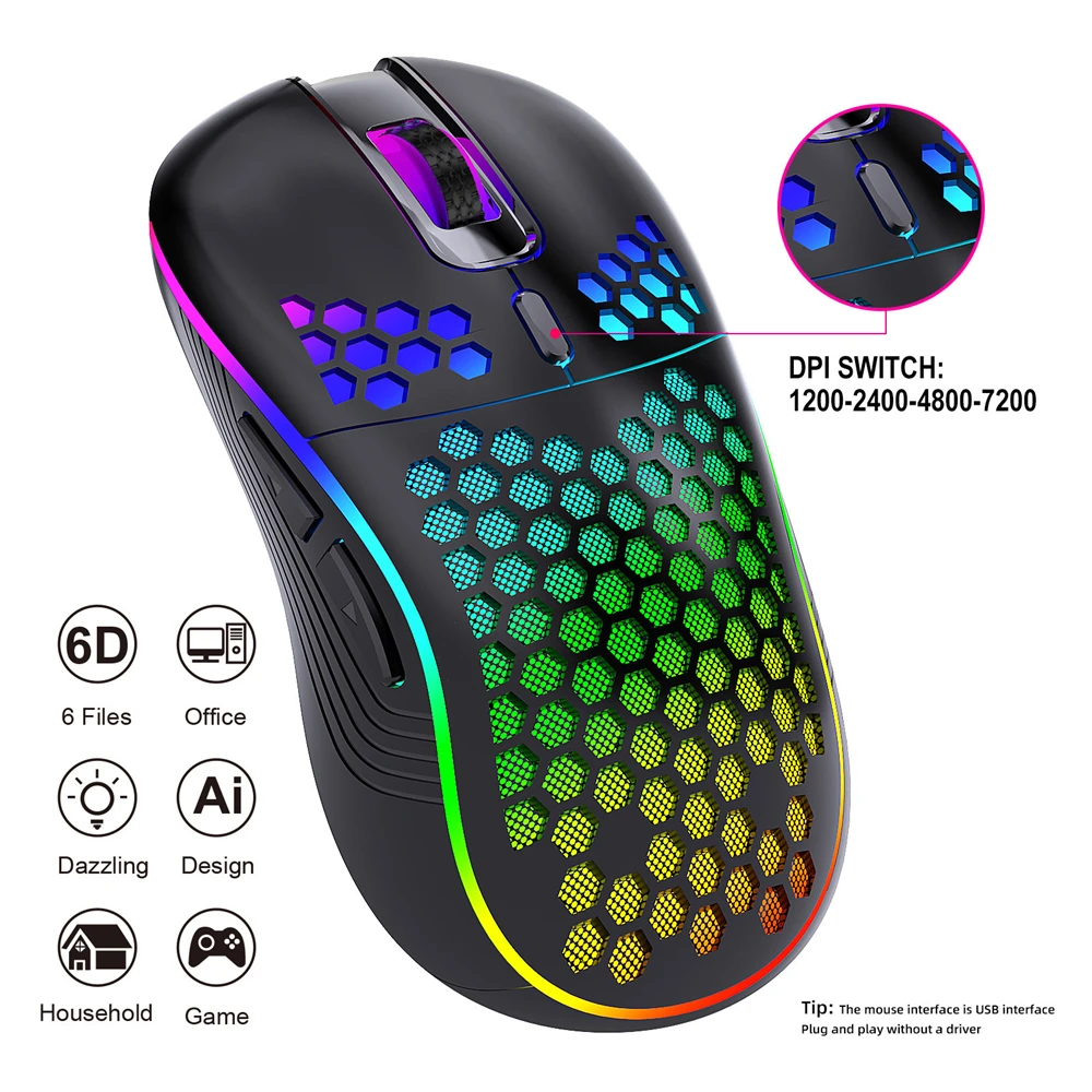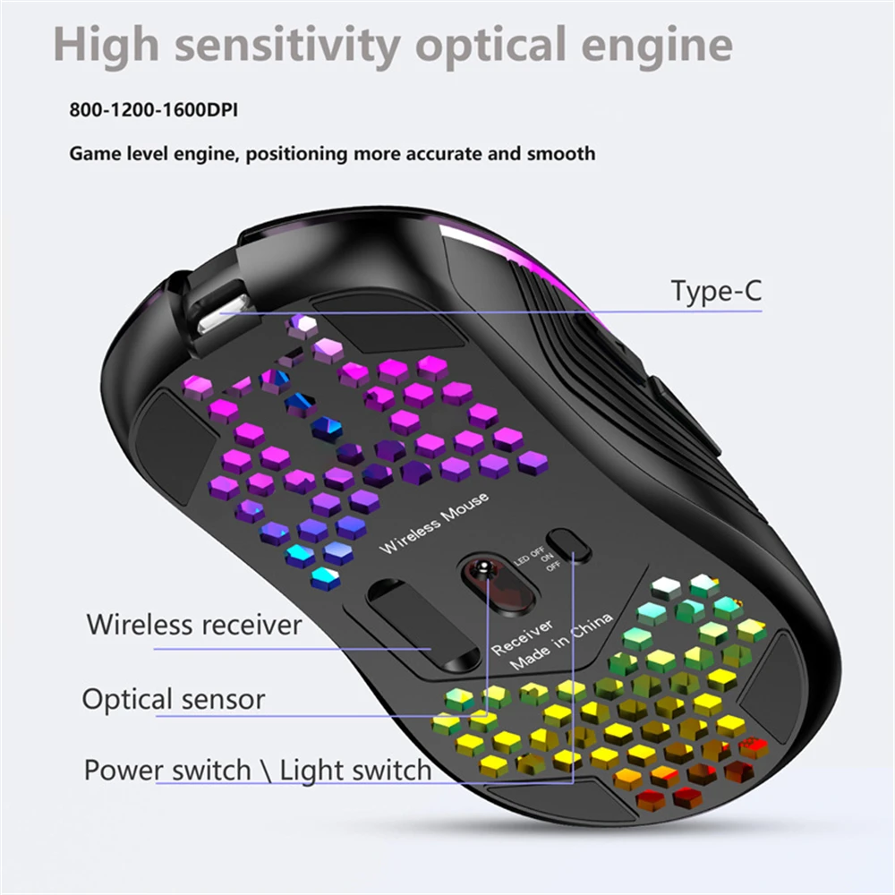 【Lightweight Honeycomb Shell Design】Creative design for taking the lightweight honeycomb shell, brings you the most extreme gaming experience. Owning the durable strength and excellecnt ventilation, never worried that it was fragile, and meanwhile it keeps your palms cool and fresh, moving it more quickly and freely during your games, assures your long-session gaming without fatigue.