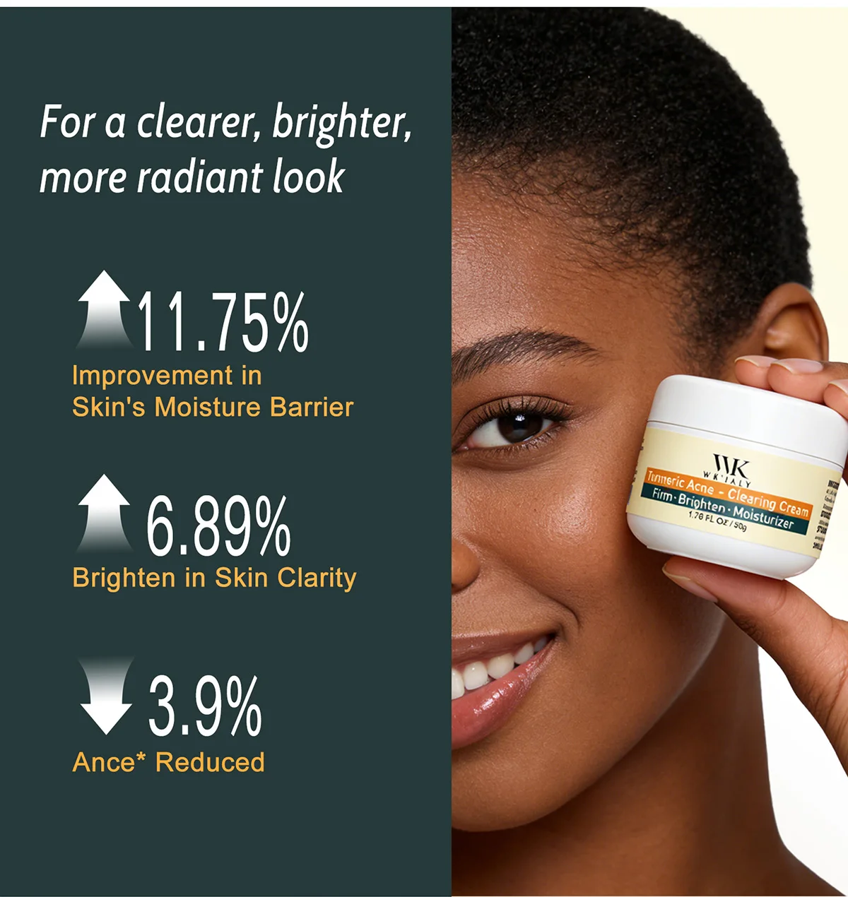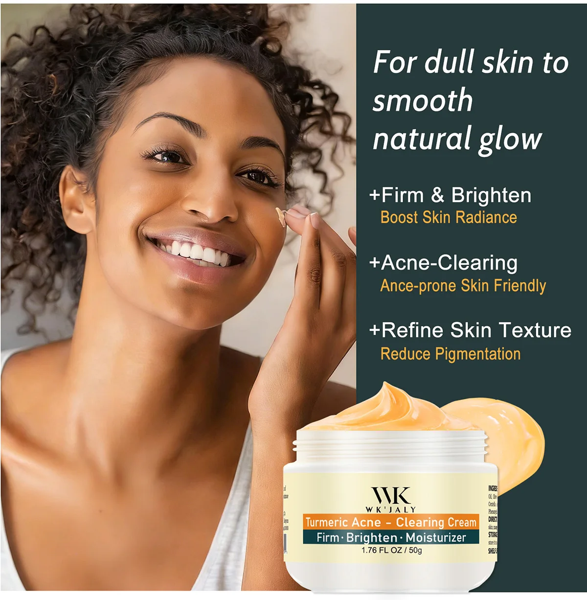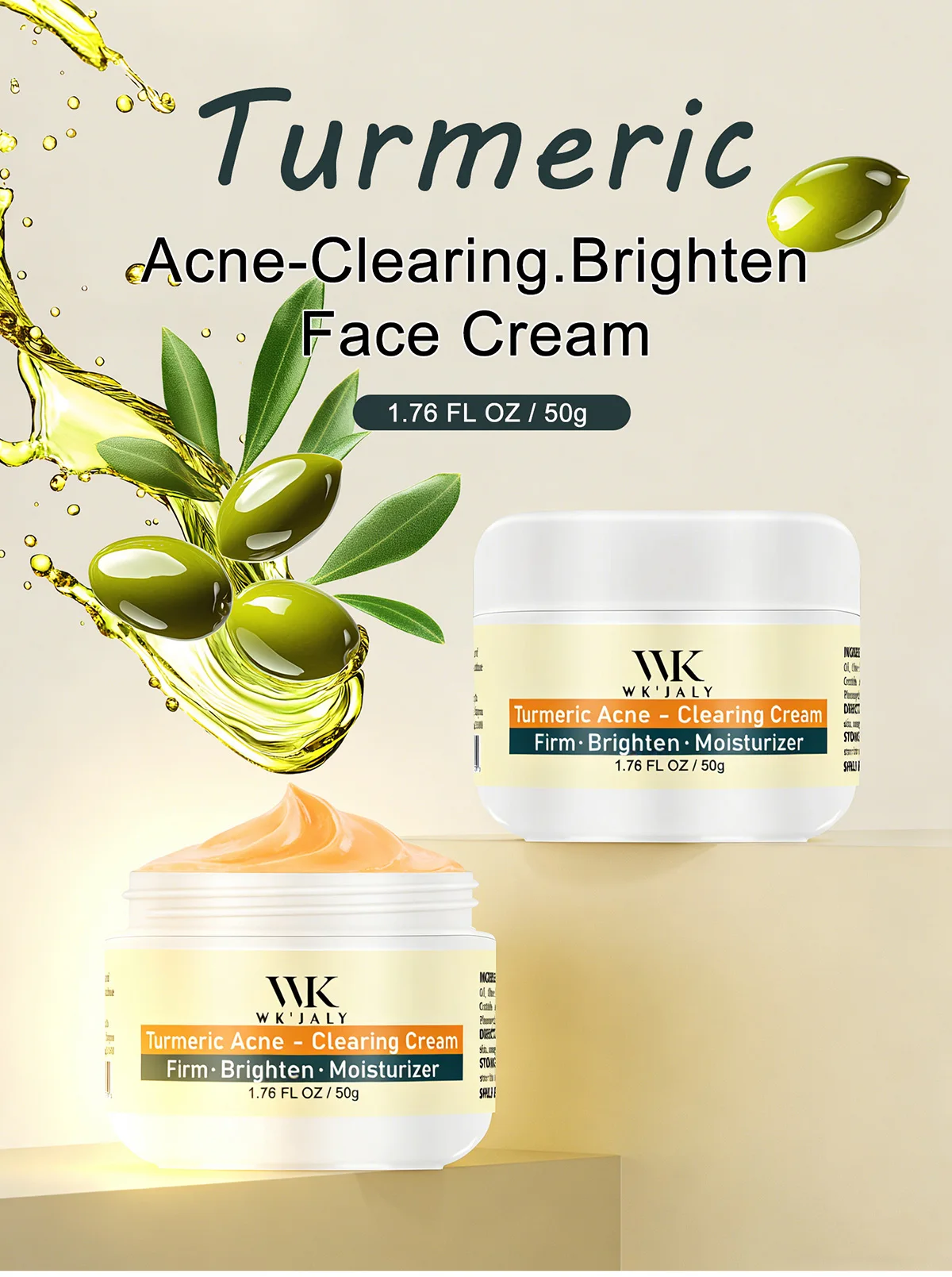 WK JALY Turmeric Acne Facial Cream, Reduce Breakouts, Brightening, Clean Skin, Moisturize, Smooth, With Natural Aloe Vera