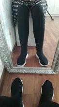 Satisfied with my stocking boots. It's summer now and I can barely pull it on, but I think it will be easier to wear tights in the fall. Very light and beautiful shoes. Recommend!