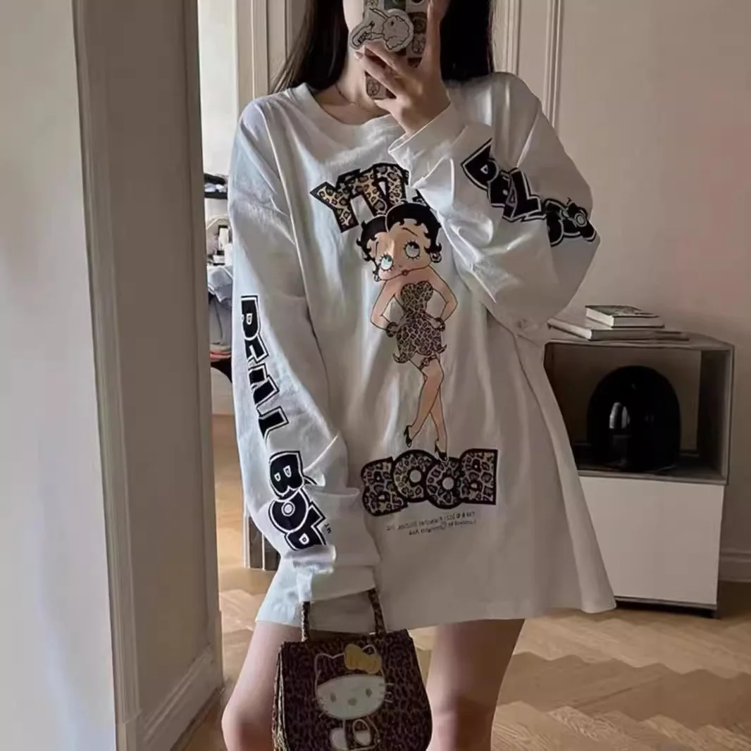 Women Casual Loose Pure Cotton Top Cool Sweet Pattern Bat Design