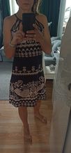 The dress looks exactly like the picture. But take a size larger, and if you like free, two sizes larger. Quality is for an amateur, like knitwear, but in the hands it is rip like snow, dressed to wrinkle and immediately mated. Most likely there will be a dress for the house where the air conditioner works.