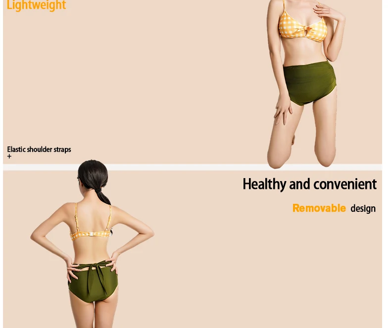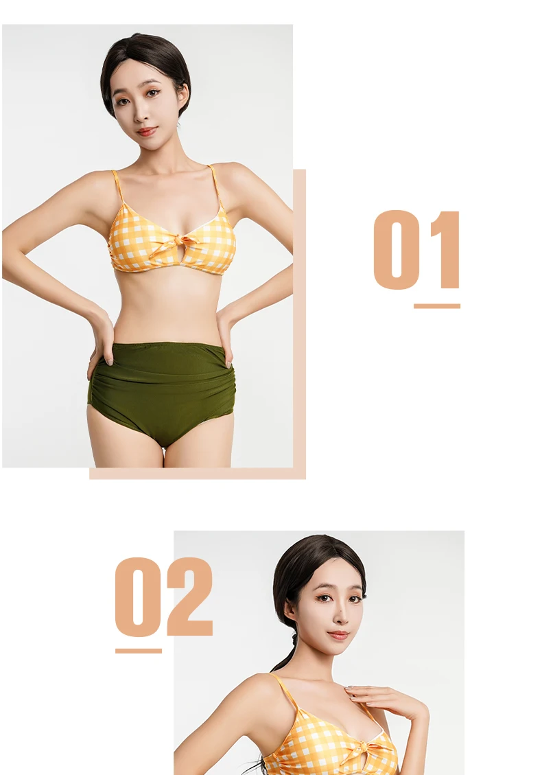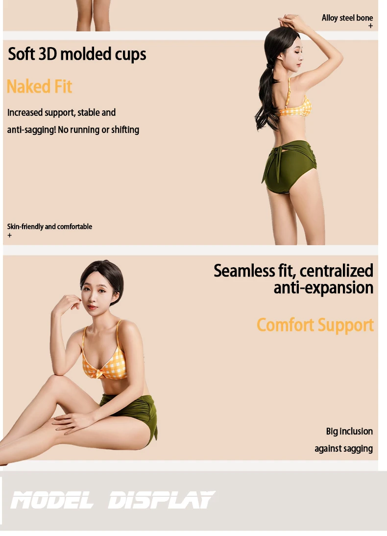 Women Two Pieces Padded Bikini Swimsuit Set Summer 2024 High Waist Push Up Swimwear Korean Bathing Suit Sexy Beachwear Biquinis