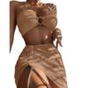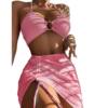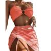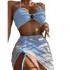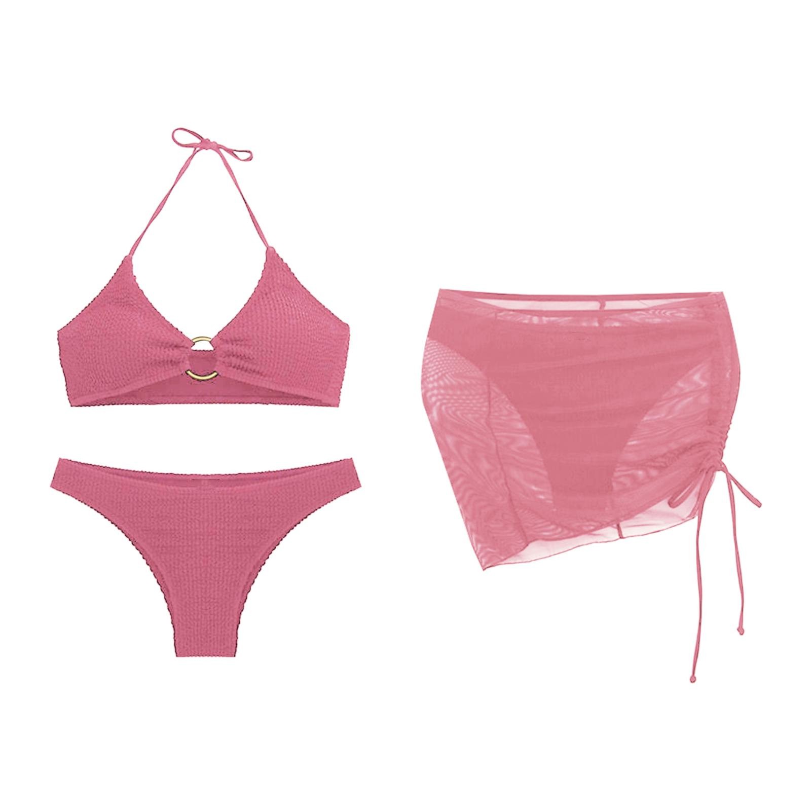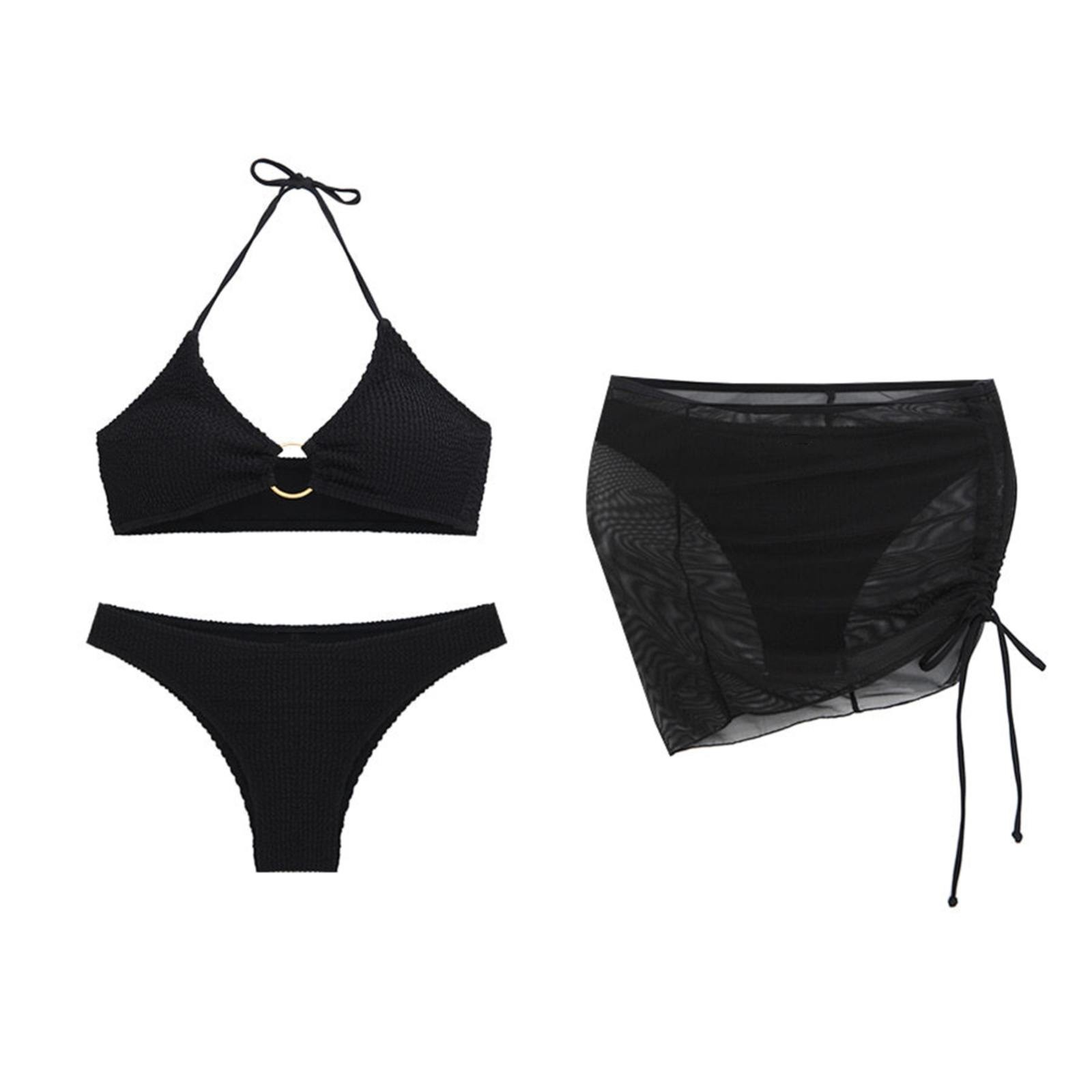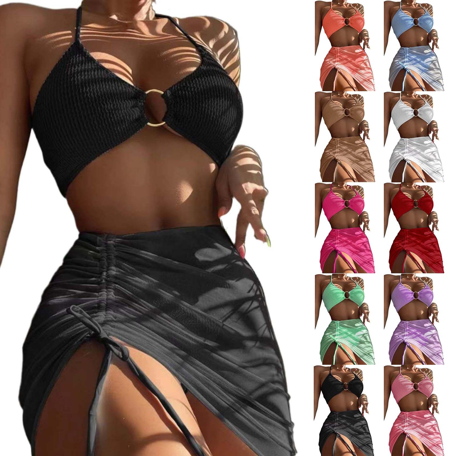Women’s 3 Piece Bathing Suits Halter Ring Bikini Set With Cover Up Skirt