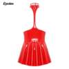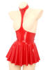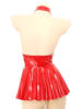 Women’s wet look patent leather halter dress with 2 press buttons at the back of collar for easy wearing.