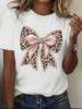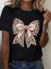 Women’s Four Seasons Comfort T-shirt, printed with elegant and fashionable leopard print bowknot pattern, short-sleeved polyester blend fabric with moderate elasticity and breathability, high-quality casual and fashionable round-neck T-shirt