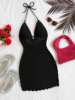 Women’s V-Neck Strapless Dress, Hollow Out, Wooden Bead, Slim Fit, Gradient Color, Knitted, Sexy, Vacation Wear