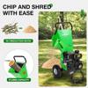 - This Chippers powerful recoil starting 7HP Horizontal 4-stroke Single Cylinder OHV Gas Powered Engine, handles up to 3″ diameter wood without a problem; Fuel w/ 87+ unleaded gasoline (NO ETHANOL recommended), 0.7 gallons Max capacity