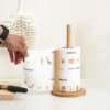 Keep your tissues easy to access and store with this wooden paper towel holder countertop. It has a sturdy base at the bottom and is made of natural bamboos wood for durability and eco-friendliness. You can easily assemble and complete it in minutes. It is suitable for kitchens of any size and style.