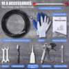 - Package Includes: You will receive an airless paint sprayer, 1 pcs spray gun, 1 pcs 7.5m high pressure pipe, 1 pcs 30cm extension rod, 1 pcs empty lube bottle, 1 pcs cleaning brush, 1 pair of gloves, 1 pcs cleaning needle, 2 pcs wrenches, 1 pcs spray gun filter and 1 pcs instruction. With just one purchase you have all the accessories you need to paint and start enjoying your painting time!
