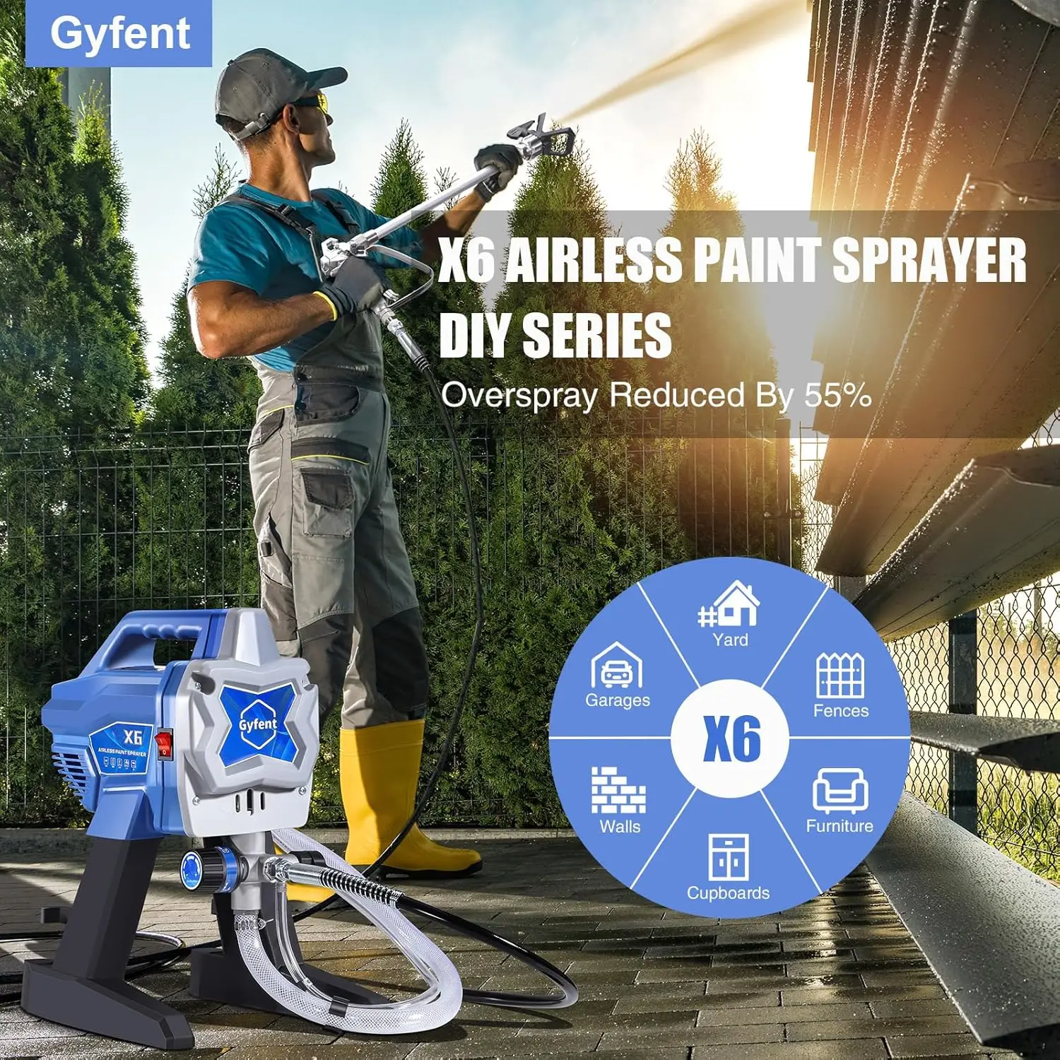 - X6 Airless Paint Sprayer:Compared with ordinary rollers or brushes, our airless paint sprayer has higher spraying efficiency and soft spraying effect, which can make the paint spray evenly on the surface of the object. It can not only greatly improve your spraying efficiency, can also make your spraying patterns more beautiful.
