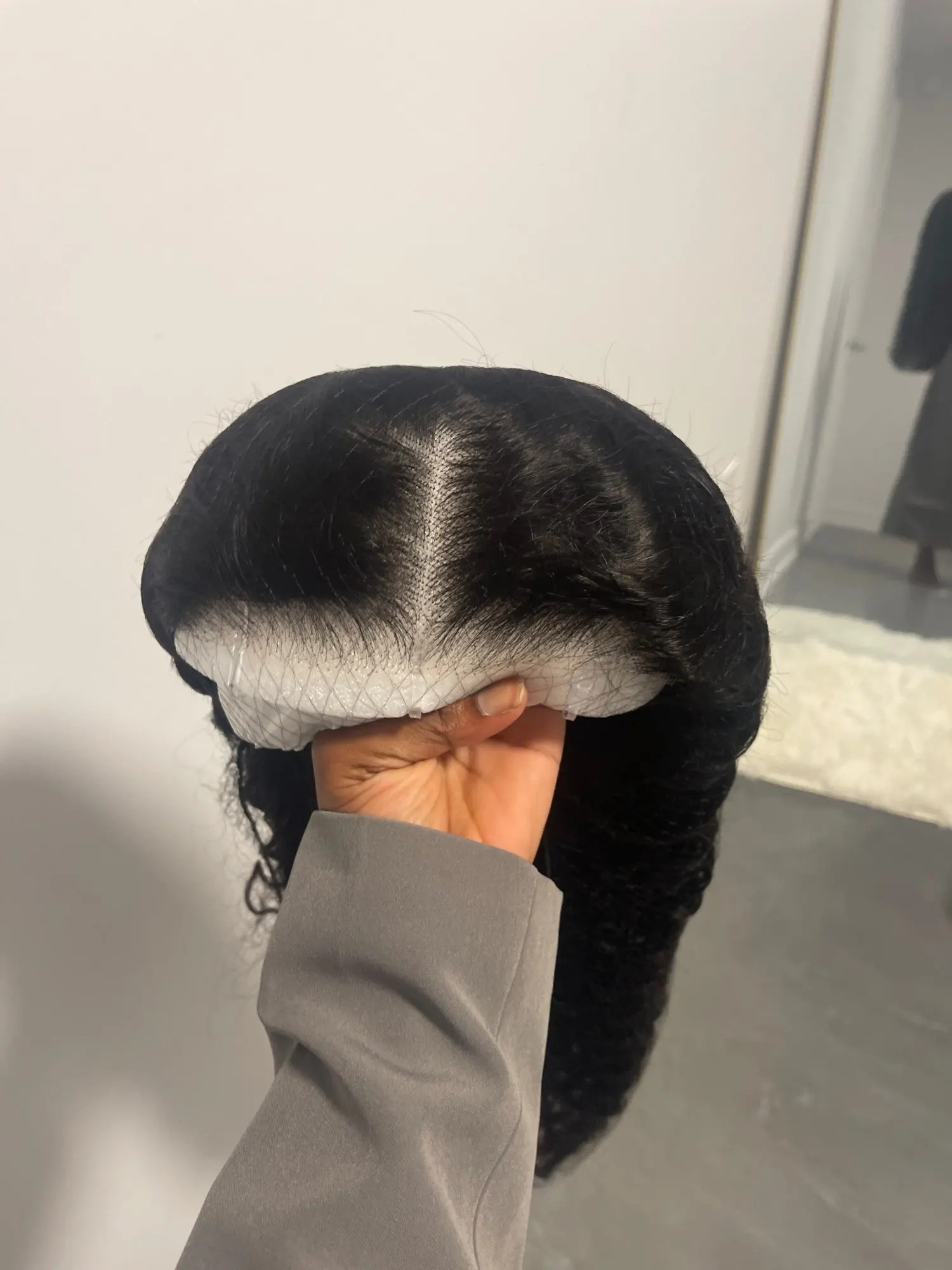My glueless wig is easy to care for. I have it installed and it holds my curls very well. The hair is very full and elastic. I love the way it looks on me, especially my natural hairline. This hair is worth every penny.