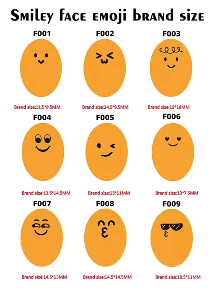 The branding machine comes with a smile by default, but if you want to customize other emojis, it’s an extra $10 per emoji. Before placing an order, please contact us to note the expression, thank you!
