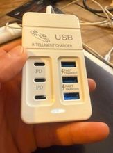 This 6-in-1 USB charger acts as a versatile charging hub, supporting multiple devices simultaneously, enhancing convenience.
