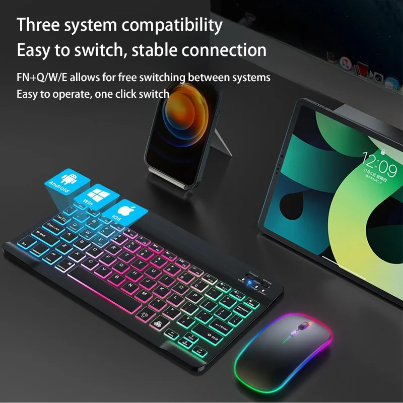 Xiaomi Wireless Bluetooth Backlit Keyboards RGB Colorful Gradient Luminous Mini Keyboard And Mouse Set For Apple Samsung Tablet