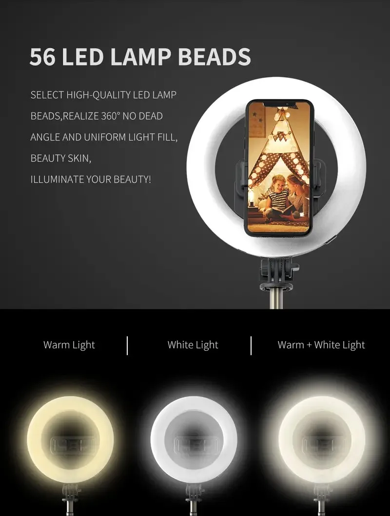 Versatile Lighting: This selfie ring light provides dimmable LED lighting for a variety of scenarios including live streaming, makeup, YouTube videos, and photography.