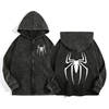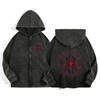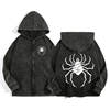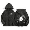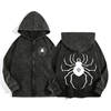Y2K Acid Wash Zip Up Hoodie Harajuku Retro Gothic Graphic Spider Print Jacket Sweatshirt High Quality Cotton Men Women Clothing