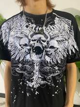 Camisetas gráficas de moda con estampado de Cruz de calavera gótica, Camiseta holgada de cuello redondo de algodón puro para hombre, camiseta informal de manga corta Y2K para parejas