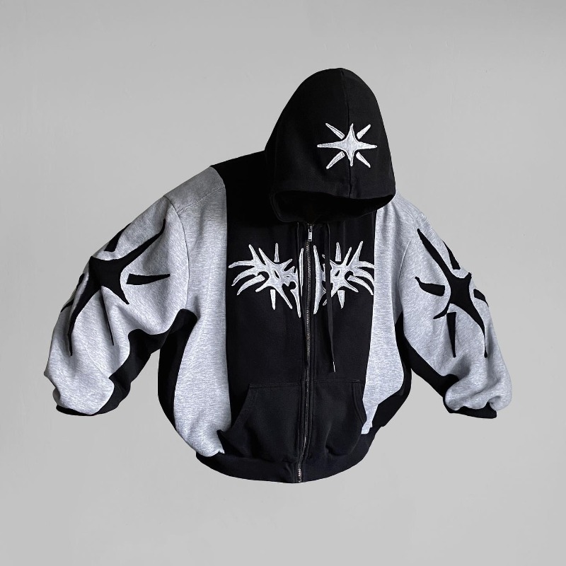 Y2K vintage zip up hoodie Harajuku Patchwork Gothic streetwear Hip Hop