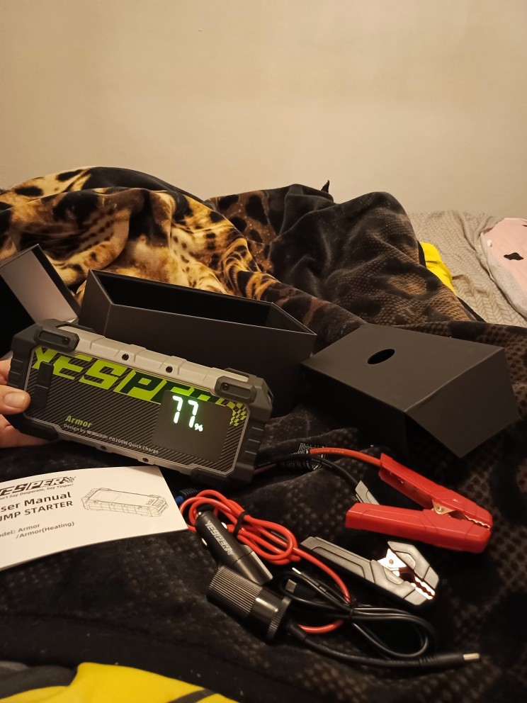 YESPER ARMOR starts a car in only three steps. You can simply clamp-on, connect to the car battery and start your car while your car battery is dead from age or weather.