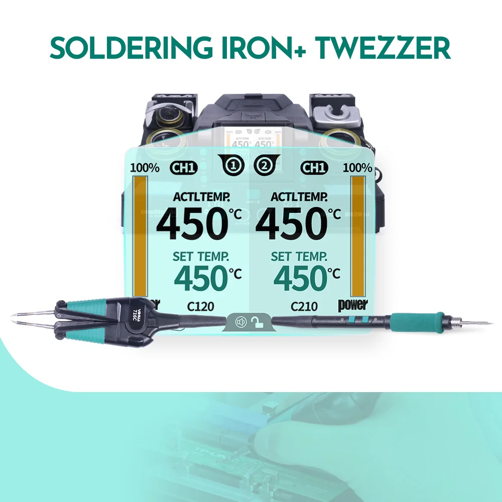 High performance tweezers soldering handpiece empowers easy desoldering application on SMD components.