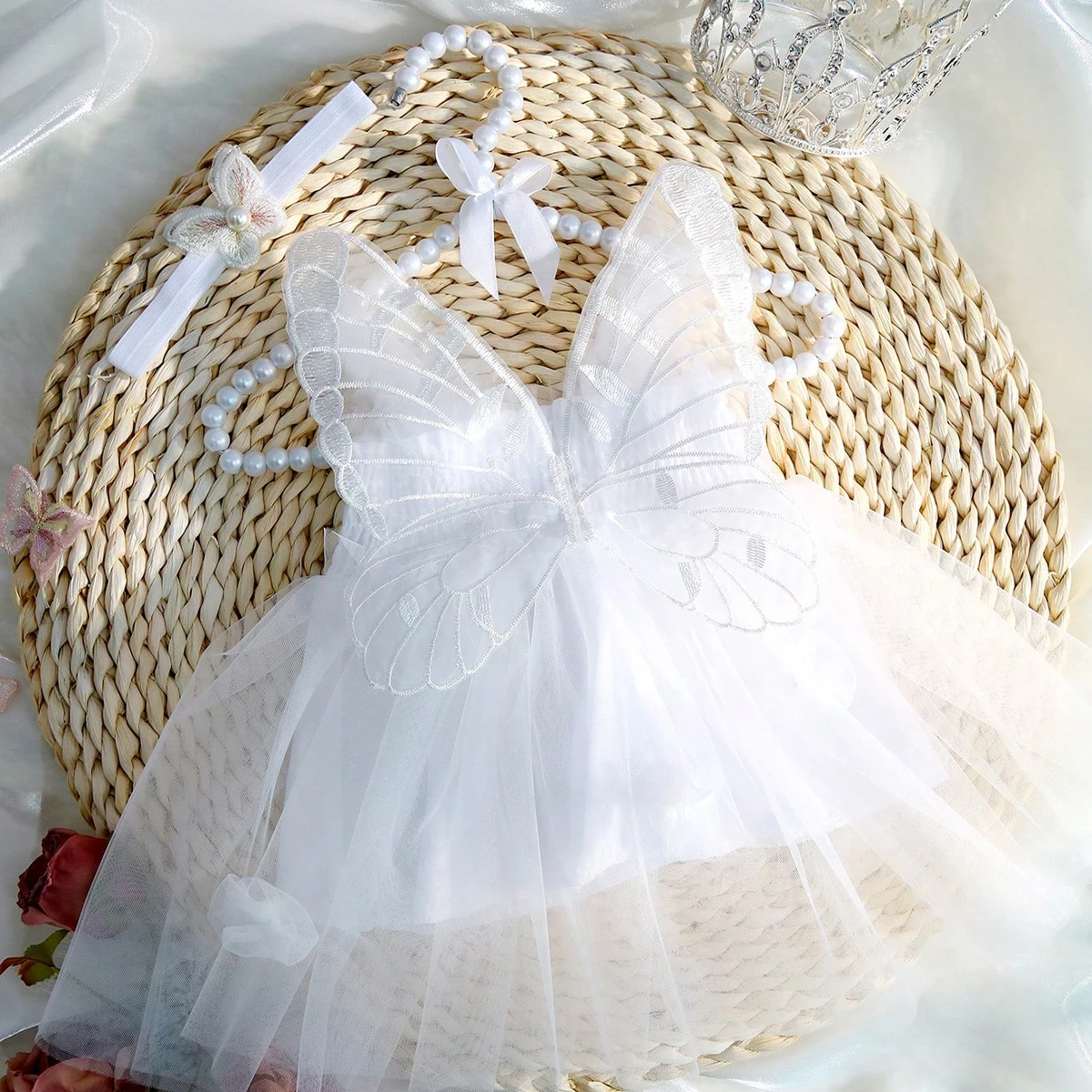 Ylsteed Newborn Girl Photography Outfits with Headband Baby Girl Butterfly Wings Mesh Dress for Photo Shooting Infant Props-HD
